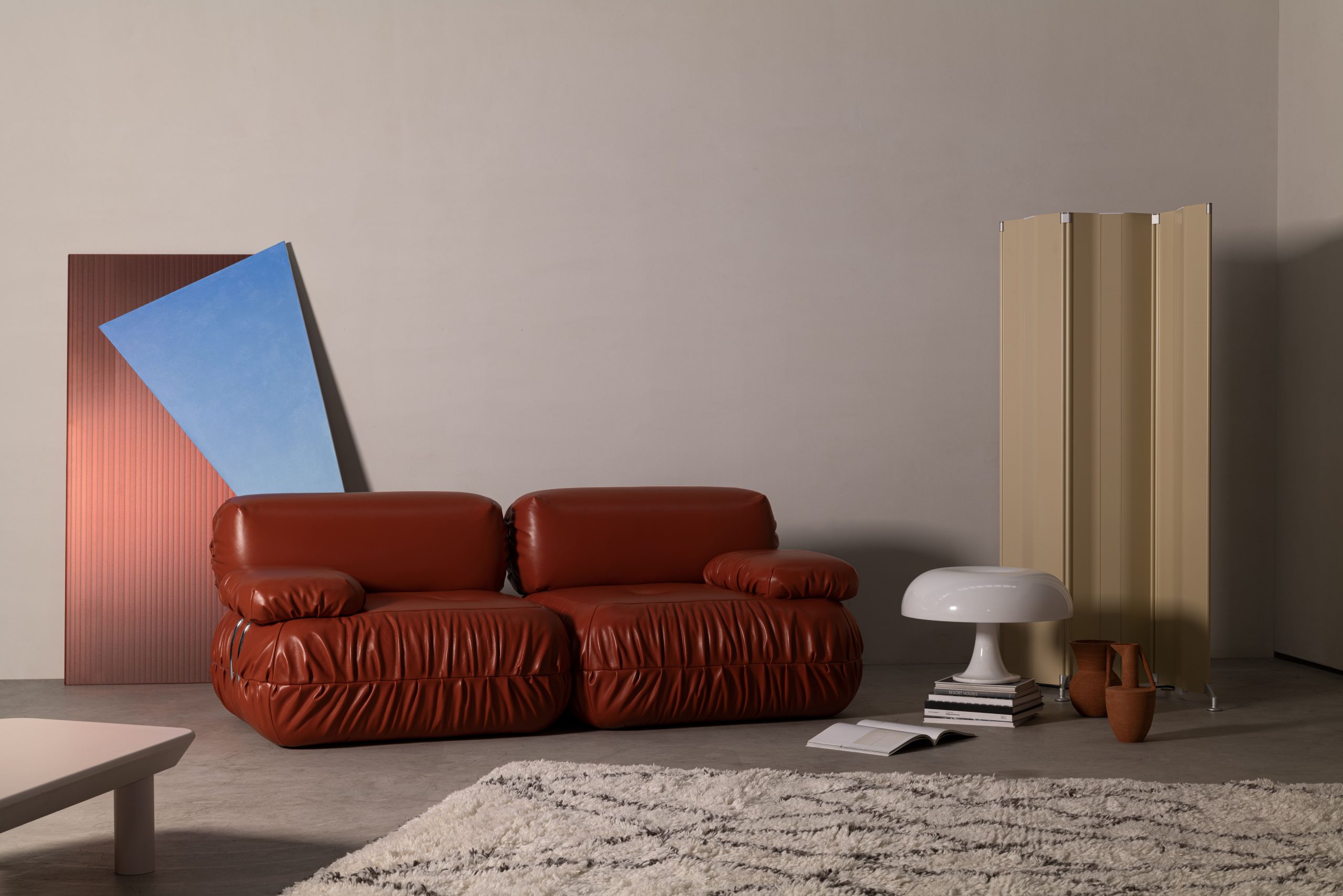 Molinari 以厚實皮革與高密度填充聞名,其設計帶有明顯的雕塑量體感,能在大坪數或高樓層景觀宅中形成視覺重心。當窗外景色開闊,室內反而需要一件具有重量感的家具來平衡比例,Molinari 的熱銷款式正是以這種存在感,為客廳建立穩定的核心。