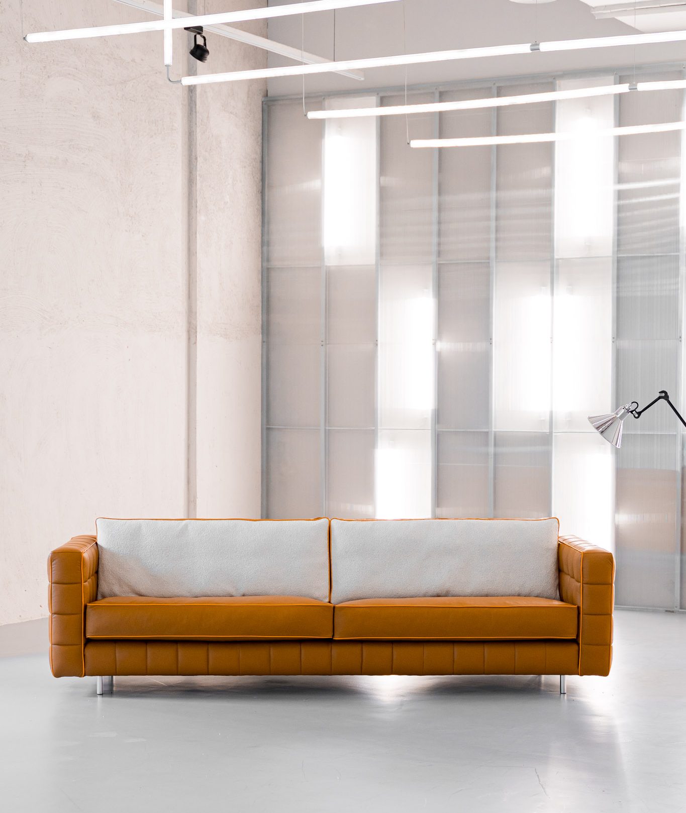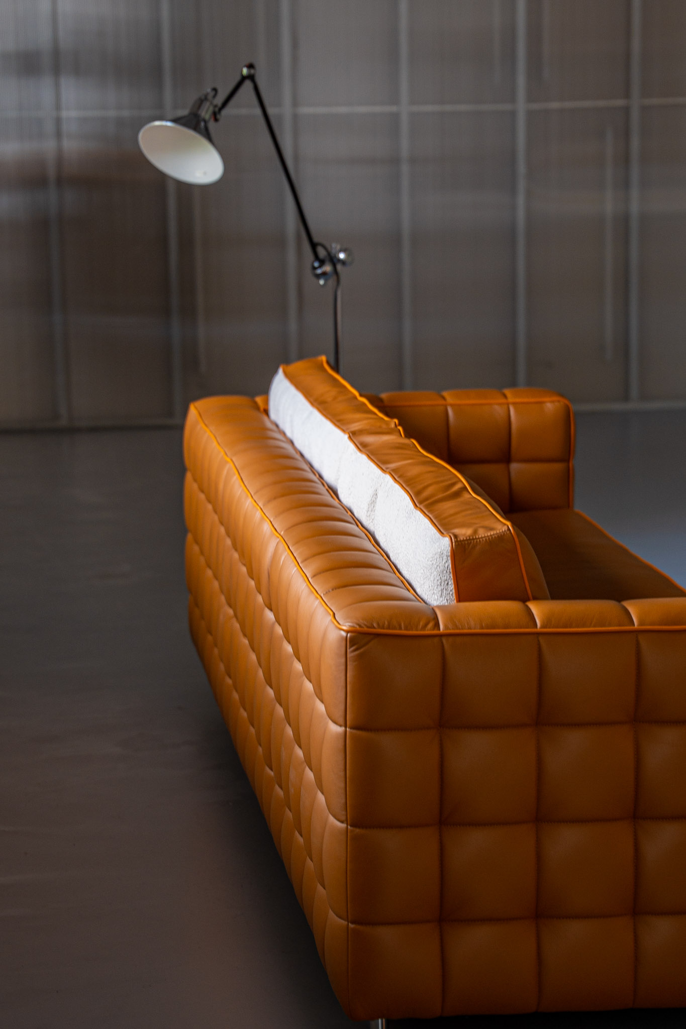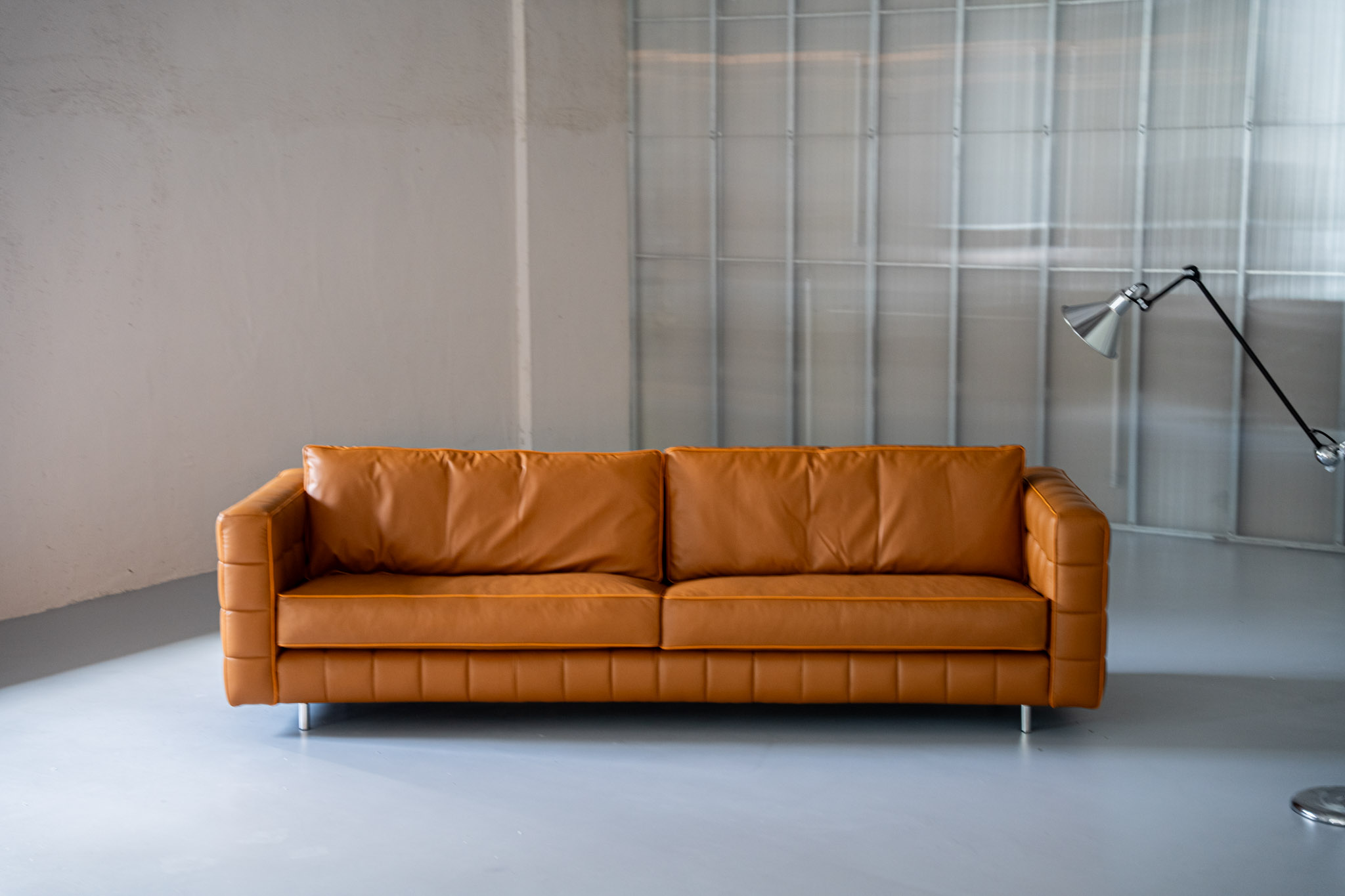 2019年4月於米蘭家具展展示當下便吸引眾多人目光,出自設計師Giuseppe Viganò之手,跳脫傳統 義大利沙發的框架,在坐墊靠墊及扶手處都多了外面一層皮革包覆的設計,不但使坐感升級,還能做跳色或漸層色的搭配,圖中的漸層雙色頂級牛皮 ”Shade”經獨特磨砂面處理,使用無毒天然的義大利植鞣技術,工匠手工染色技法,話題性十足的頂級皮革還不夠,皮革上的粗呢扣鈕也是Giuseppe Viganò結合流行元素的匠心之作,為此款沙發增添了更獨一無二的魅力 !