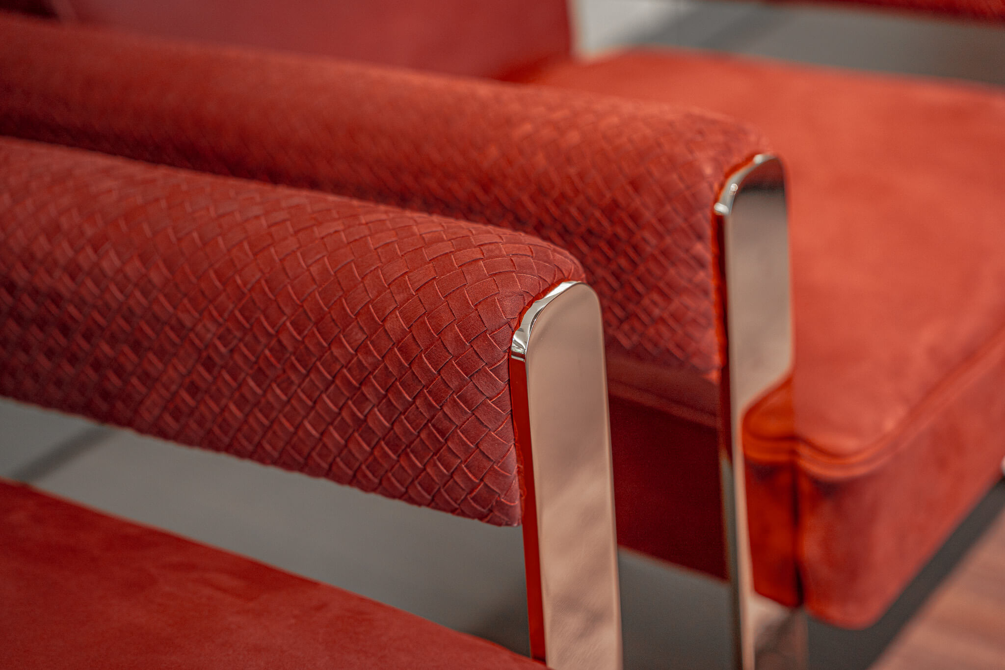 Patricia Luxury 來自義大利北部家具品牌 Ulivi,設計出自工藝體系嚴謹的家族工坊。椅身內部使用冷杉多層實木板,填充天然鵝絨與高密度記憶泡棉,搭配金屬椅腳(光澤金或霧金可選),提供穩定而細緻的坐感。可選的手工皮革編織飾面,將「久用不變形」的需求化為細節上的質地。這張椅子不是為了展示存在,而是為了你真正長時間坐下來,閱讀、思考、停下來而設計。