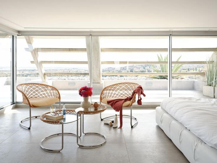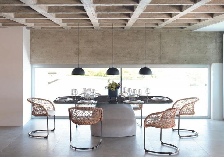 P47 的視覺語言,來自自然工藝與現代結構的結合。編織技法源於手工傳統,而金屬骨架則代表工業製造,兩者交會,使這款 義大利設計椅 能自由穿梭於現代風、工業風與度假感空間之間。