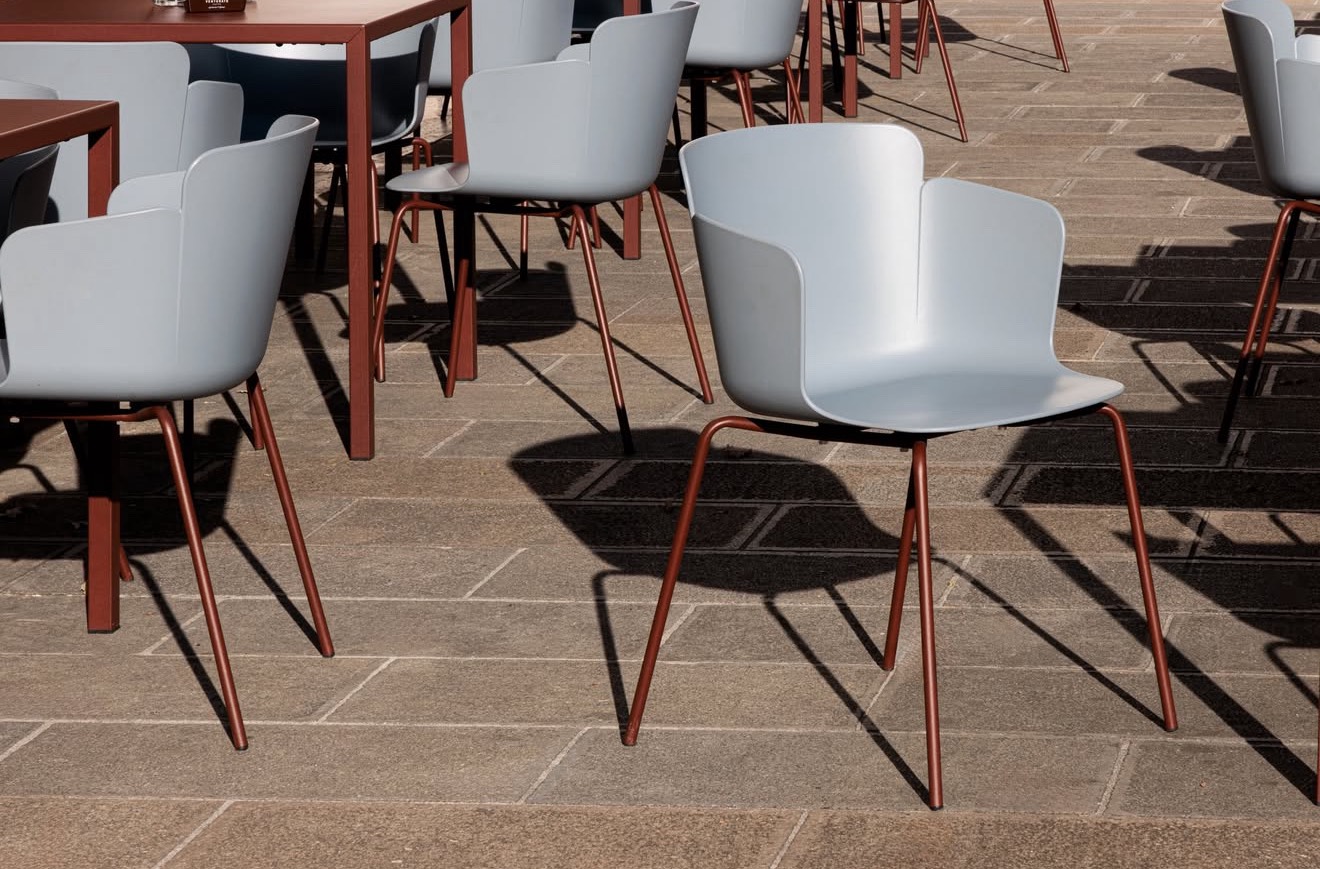 在 San Vito al Tagliamento 的 Anteprima Bar,露台成為了一個特別的場景。這裡不是傳統意義上的展覽,而是一個能真實體驗的「生活展演」。MIDJ 的 Calla 扶手椅與 Fold 桌被擺放在露天酒吧的空間中,陪伴著人們的早晨咖啡與黃昏微醺,將 義式家具 的設計語言直接帶入日常。
